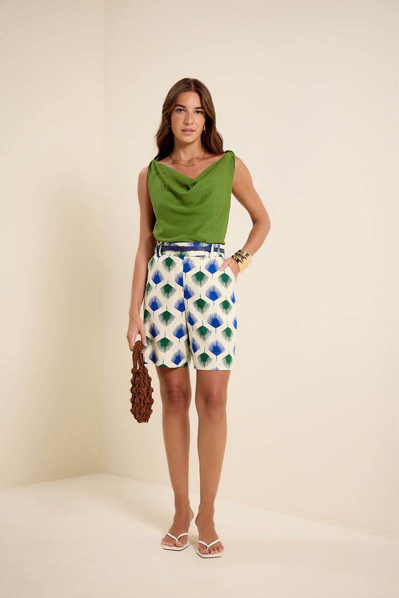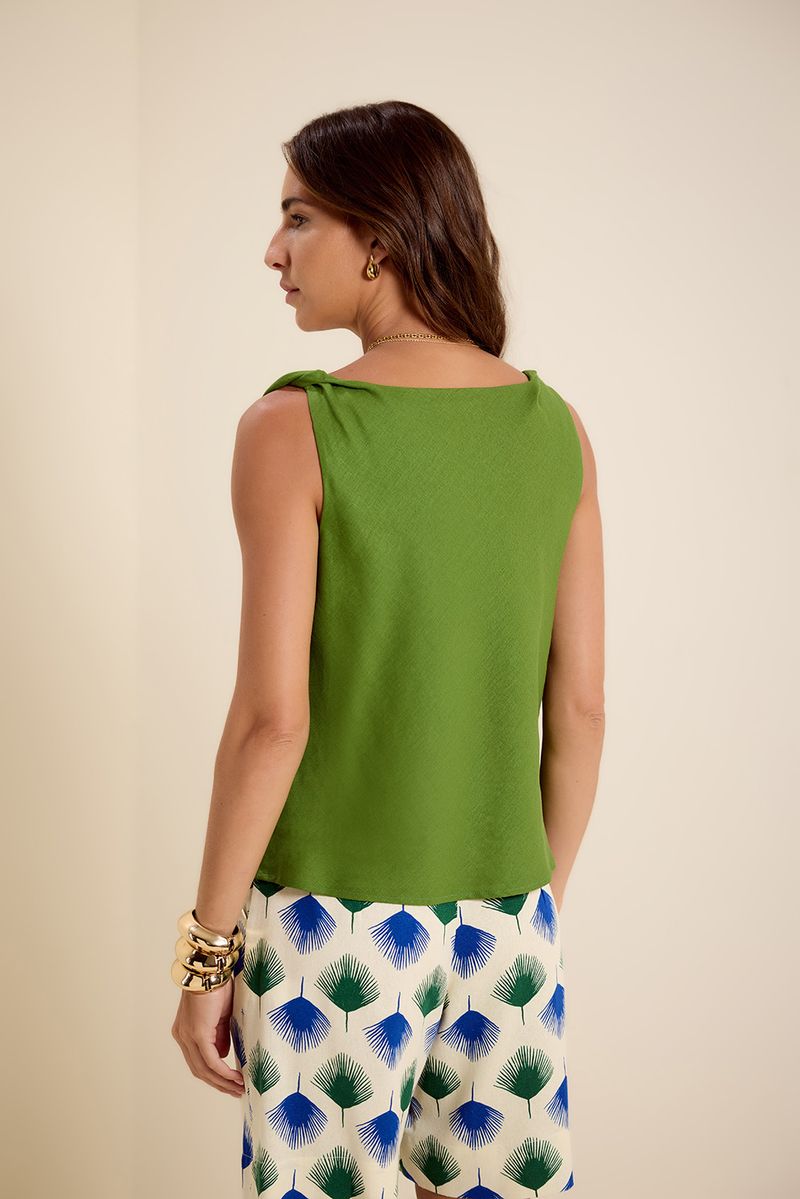 Blusa cambraia alça torcida verde folhagem