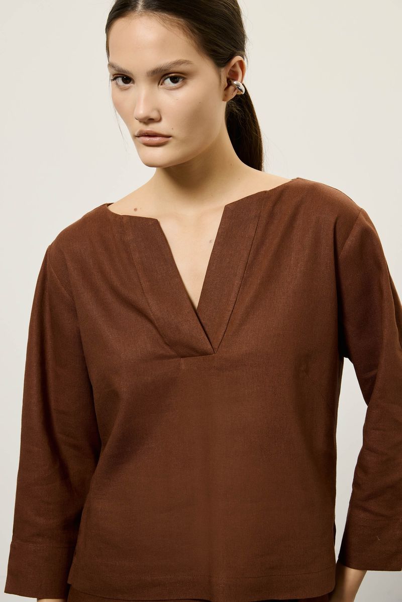 OffBlusas e camisasBlusa linho decote v marrom madeira
