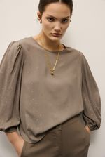 OffBlusas e camisasBlusa lurex poá manga cinza noite