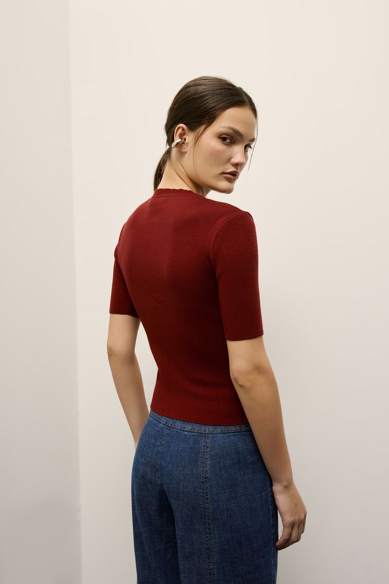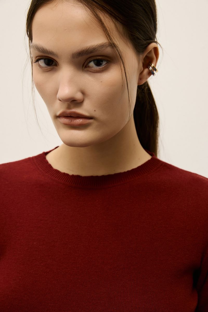 Blusa tricot manga curta vinho tango