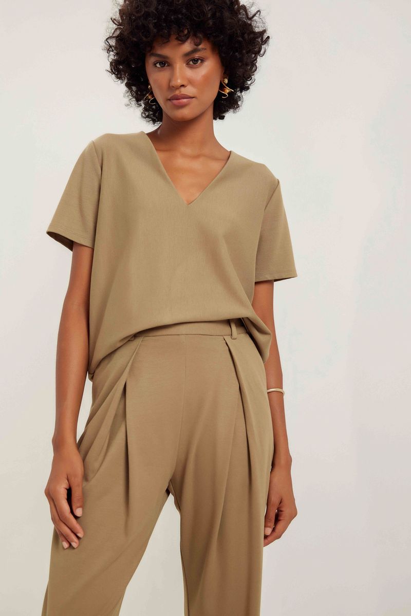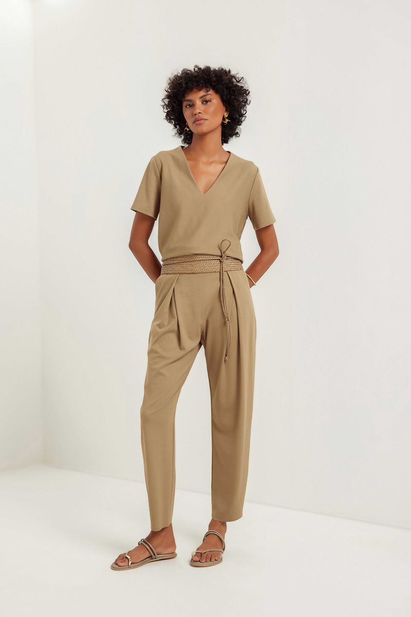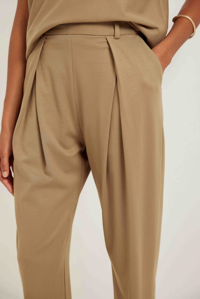 OffCalçasCalça alfaiataria dobradura verde cominho