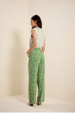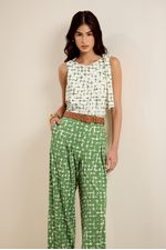 Calça bio jersey reta seiva seiva verde folhagem com off white
