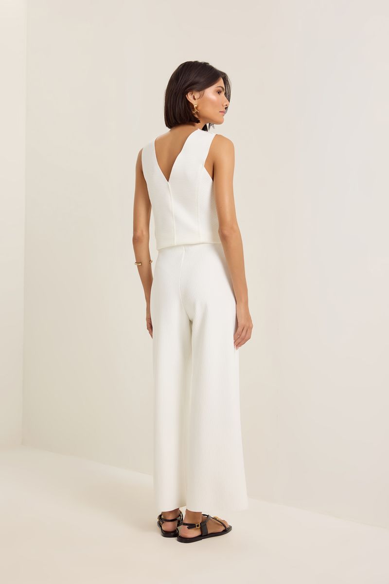 Calça em malha tecnológica com textura em relevo, modelagem reta, cós com elástico, detalhe vivo lateral e acabamento a fio. modelo veste tamanho p.