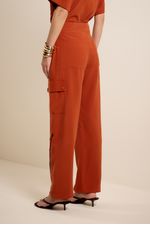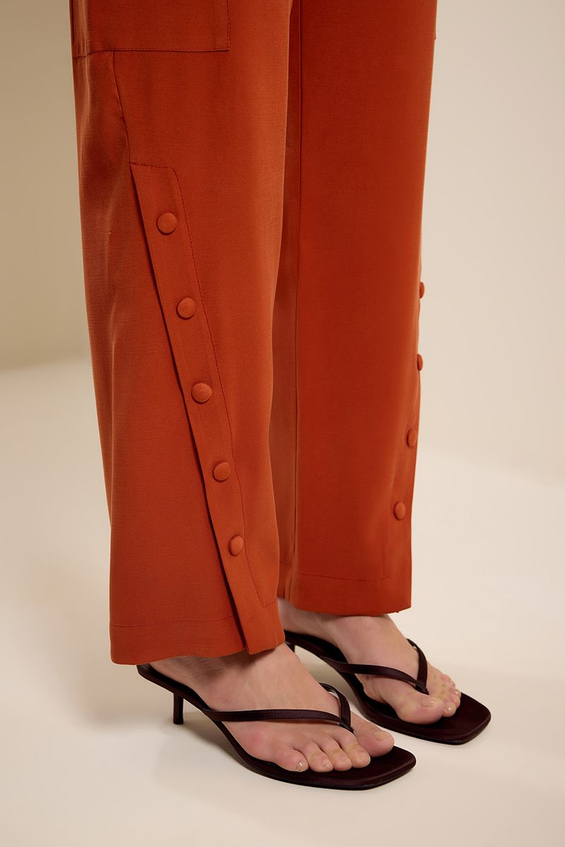 Calça fenda botões terracota