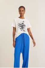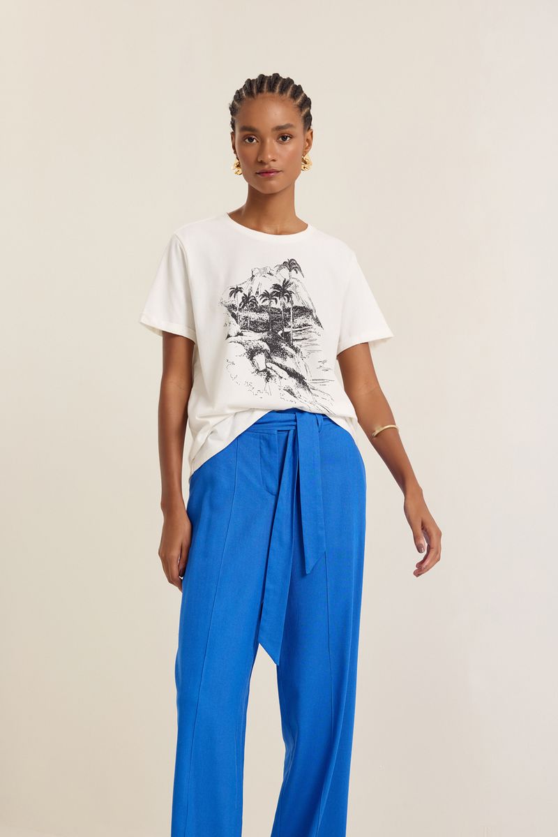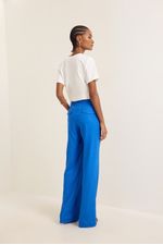 Calça linho lapela costas azul topazio