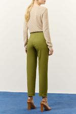 Calça de tecido plano em alfaiataria com elastano, modelagem reta, sem cós e fechamento lateral por zíper invisível. modelo veste tamanho 38.