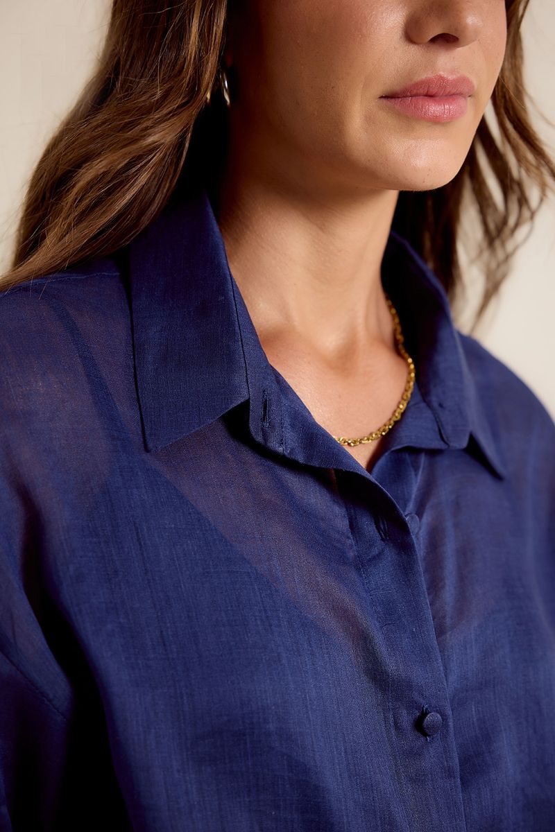 Camisa botões transparência azul luar