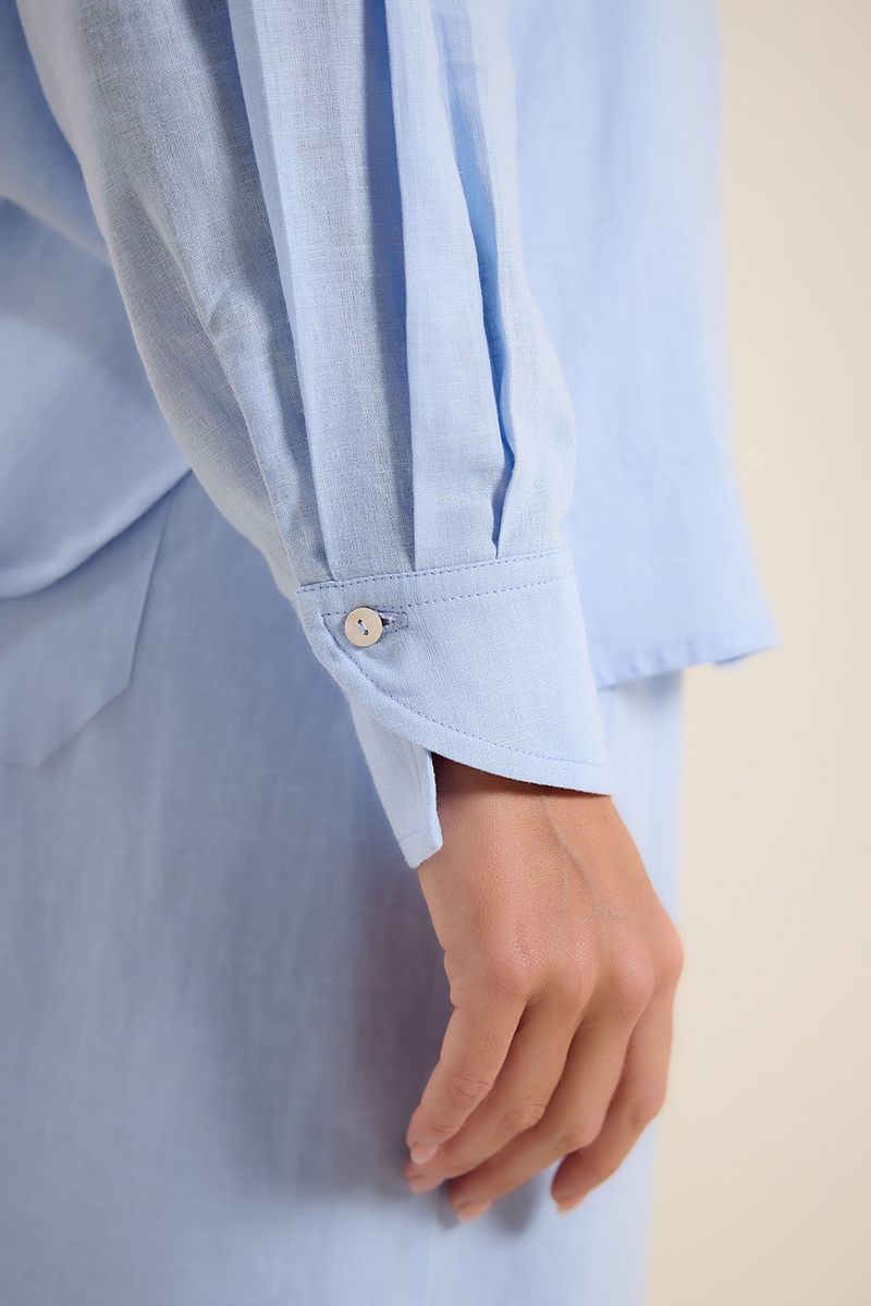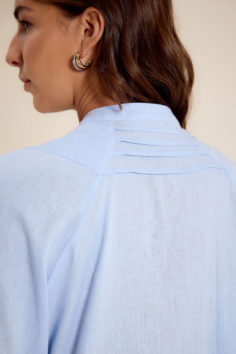 Camisa cambraia det costas azul céu