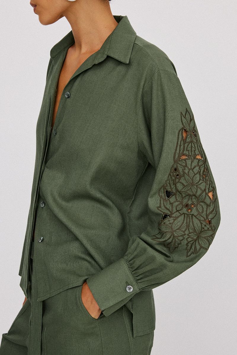 OffBlusas e camisasCamisa linho manga bordada verde oliva