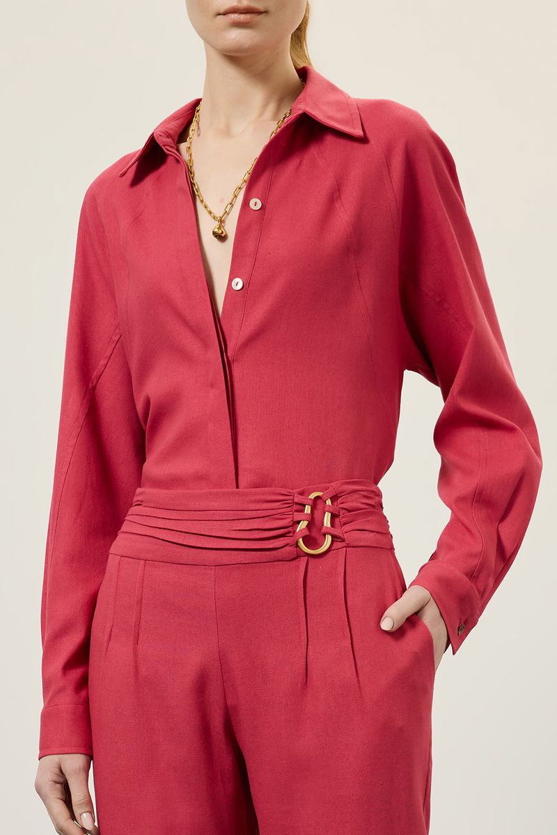 Camisa linho recortes botão rosa bolero