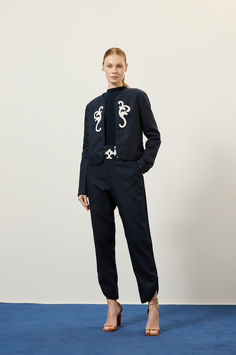 Casaco rami bordado azul rock