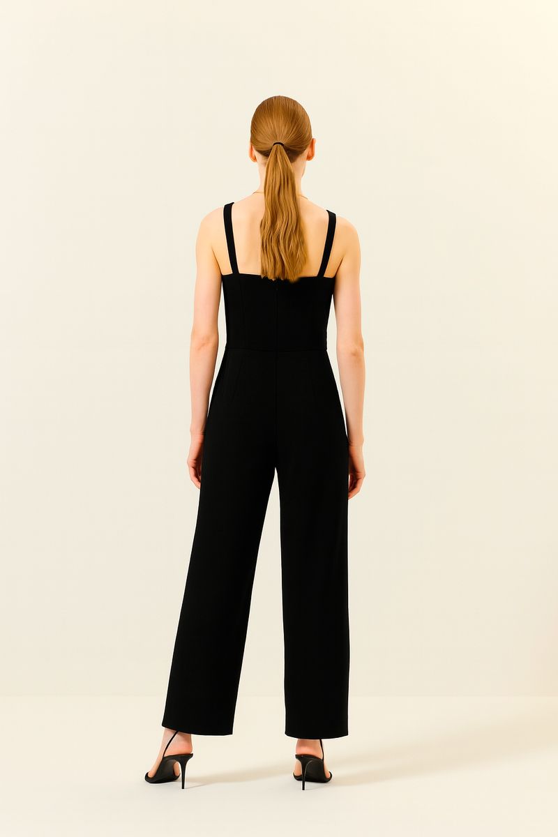 Macacão crepe pregas preto