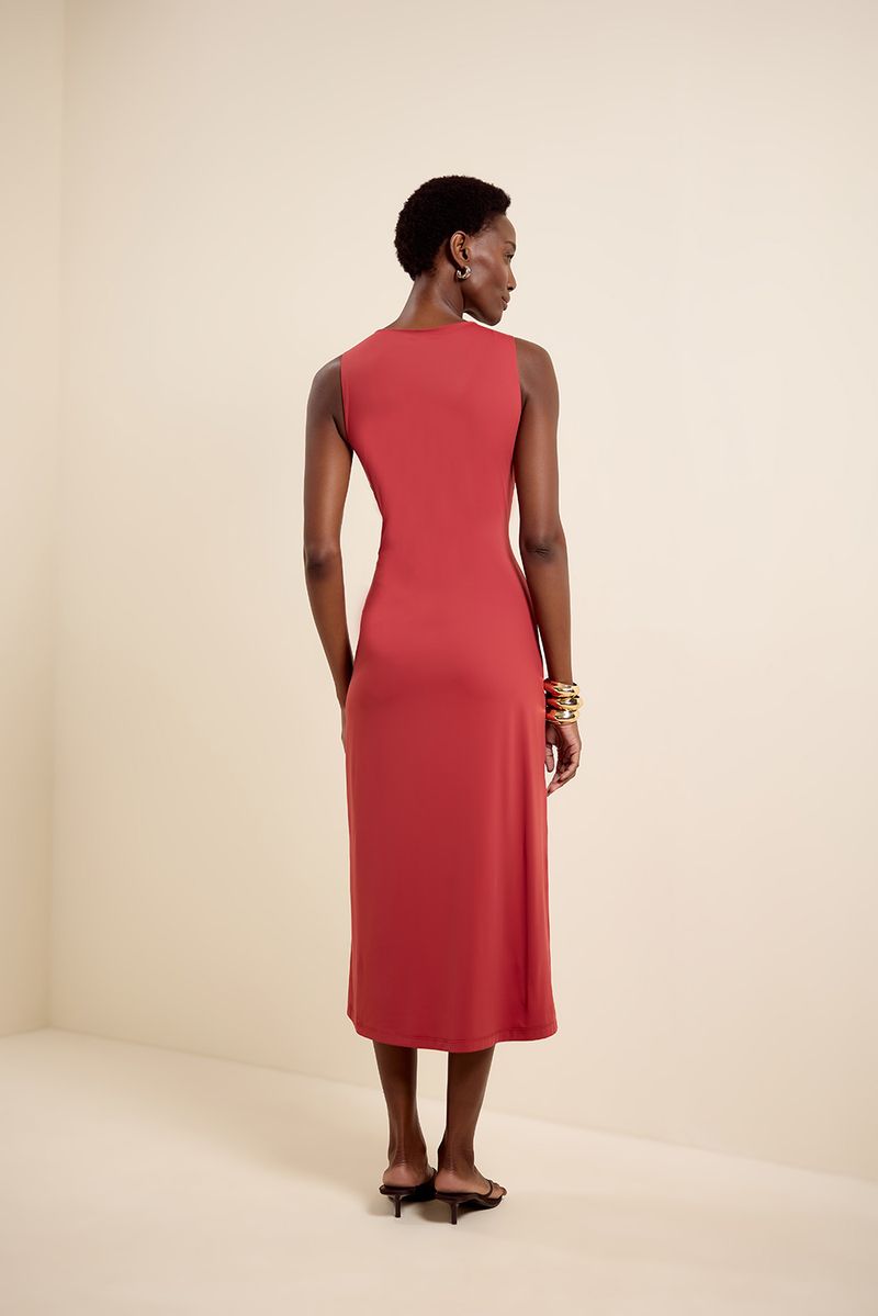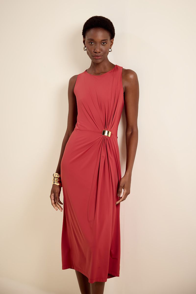 Vestido bio jersey detalhe metal terracota