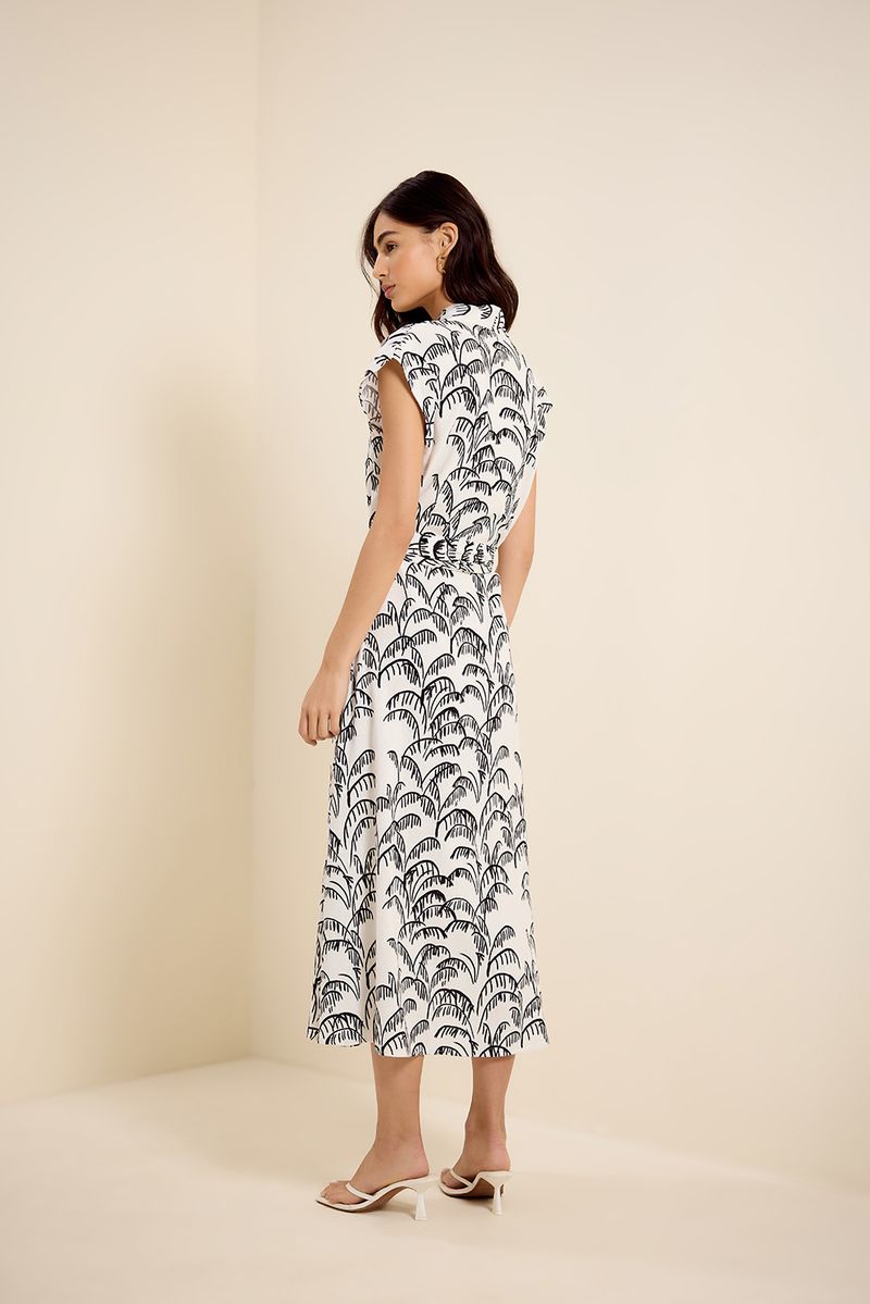 RoupasVestidosVestido chemise cinto palmeira flora off white com preto
