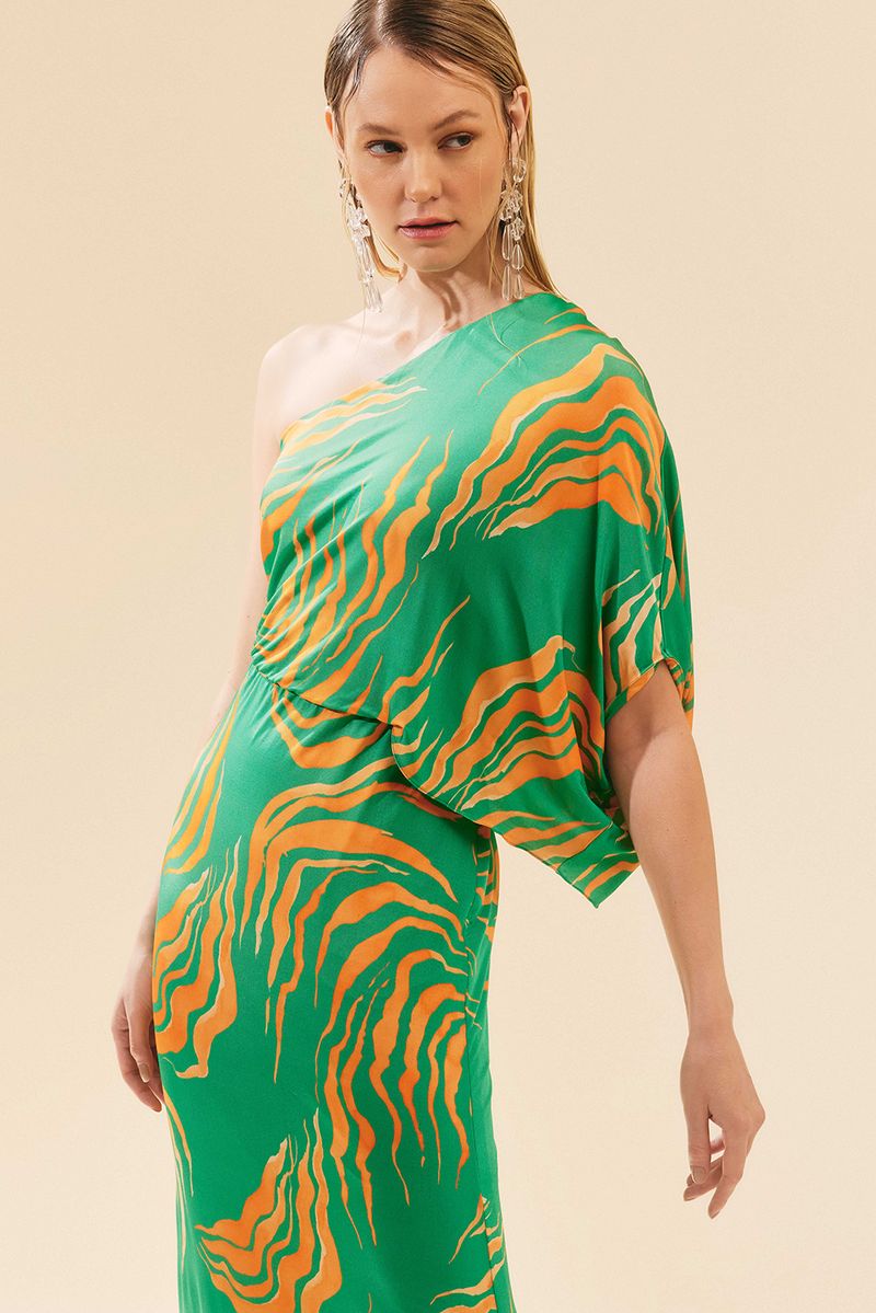 OffFestaVestido festa ombro peixe paraíso verde astral