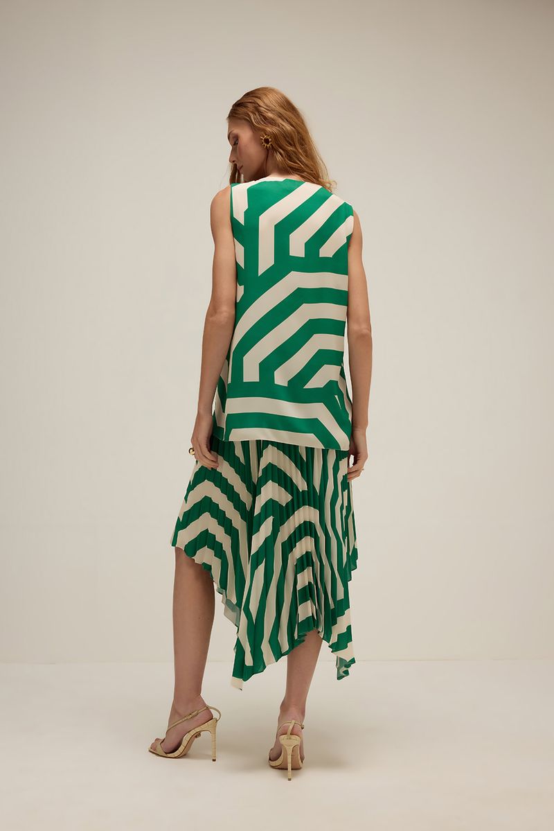OffFestaVestido festa plissado listra ipanema verde palmeira