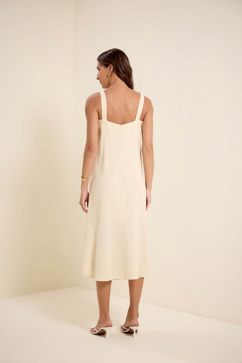 Vestido linho midi bordado bege concha