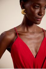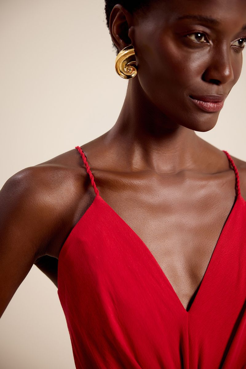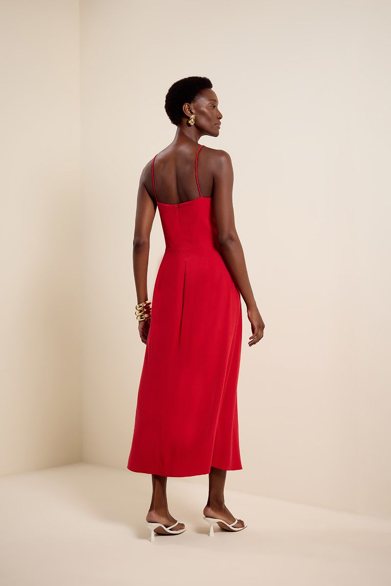 Vestido midi torção vermelho hibisco