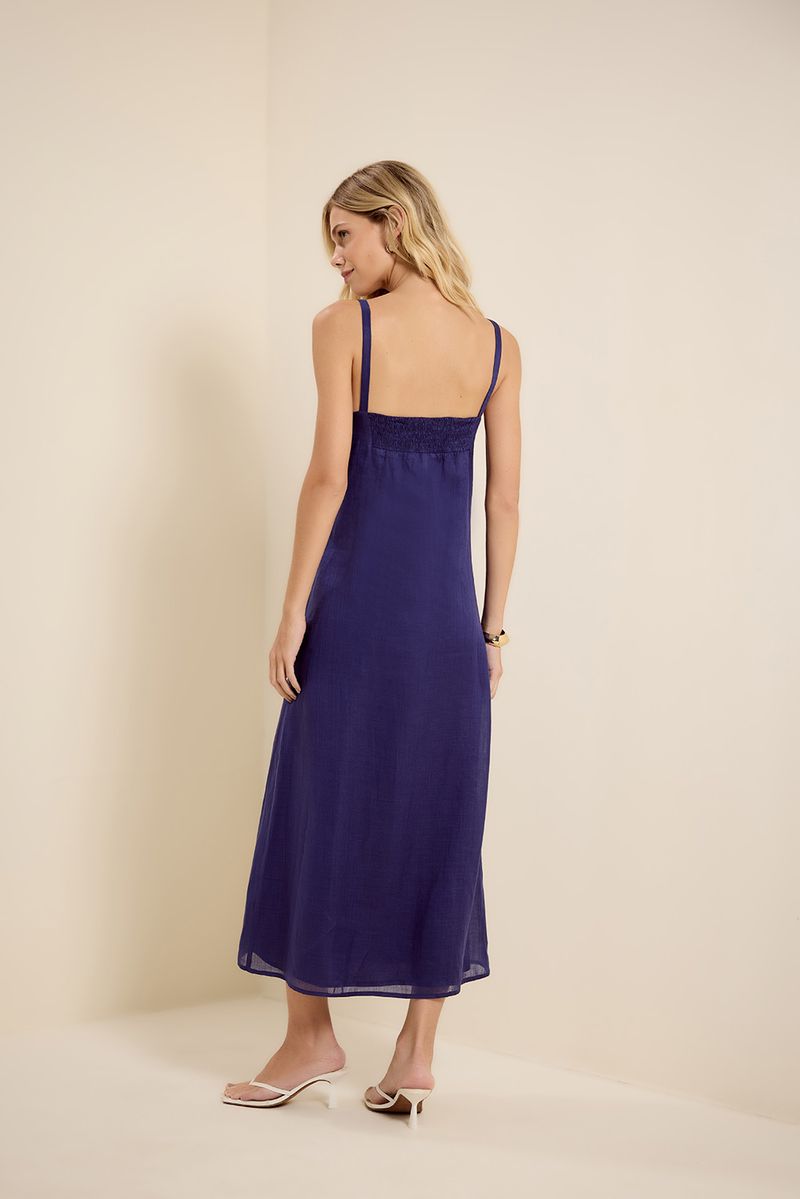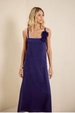 Vestido de tecido plano em rami, modelagem coluna, sem manga, decote reto, detalhe de pregas nas laterais, lastex costas e fechamento lateral por zíper invisível. peça possui flor de tecido removível e forro. modelo veste tamanho 38.